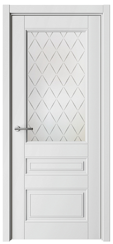 Дверь Классика-3 ширина 90 см Белый Эмаль Стекло мателюкс "Лорд матовое" кромка В цвет полотна в Рыбинске
