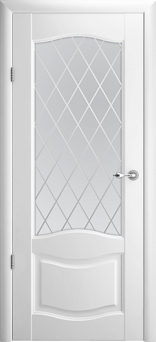 Дверь Лувр-1 ширина 80 см Белый Vinyl Мателюкс с алмазной гравировкой "Ромб" с замком в Рыбинске