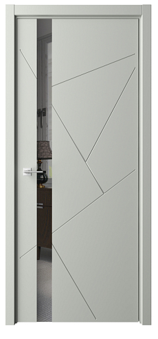 Дверь Геометрия-6 ширина 80 см Латте Эмаль Зеркало грей с замком кромка В цвет полотна в Рыбинске