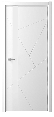 Дверь Геометрия-6 ширина 80 см Белый Эмаль Стекло белое с замком кромка В цвет полотна в Рыбинске