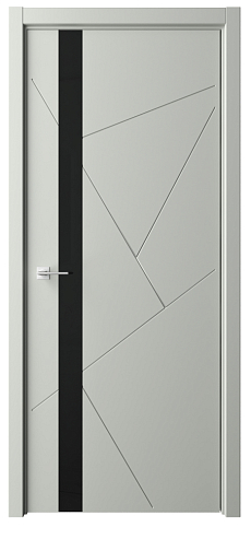 Дверь Геометрия-6 ширина 80 см Серый Эмаль Стекло черное с замком кромка В цвет полотна в Рыбинске