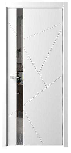 Дверь Геометрия-6 ширина 80 см Латте Эмаль Зеркало грей с замком кромка В цвет полотна в Рыбинске