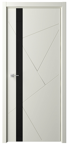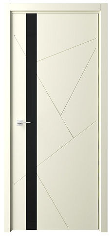 Дверь Геометрия-6 ширина 90 см Латте Эмаль Стекло черное кромка В цвет полотна с замком в Рыбинске