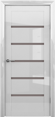 Дверь Вена ширина 90 см Белый глянец Глянец Стекло мателюкс бронза с замком в Рыбинске